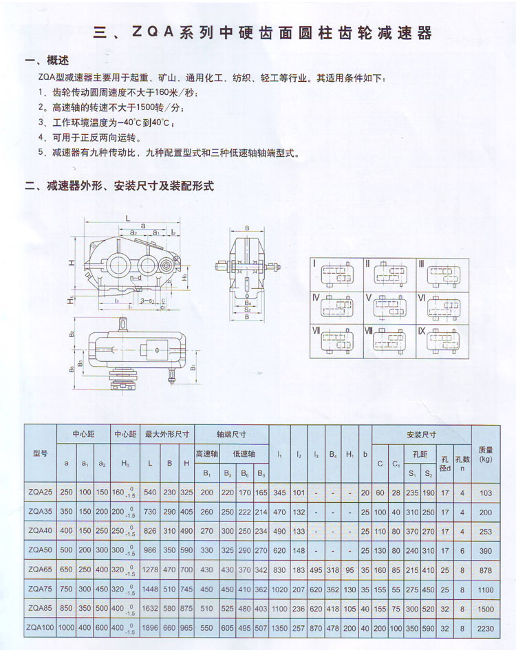 使用要求:1) 齿轮圆周速度不大于20m/s;